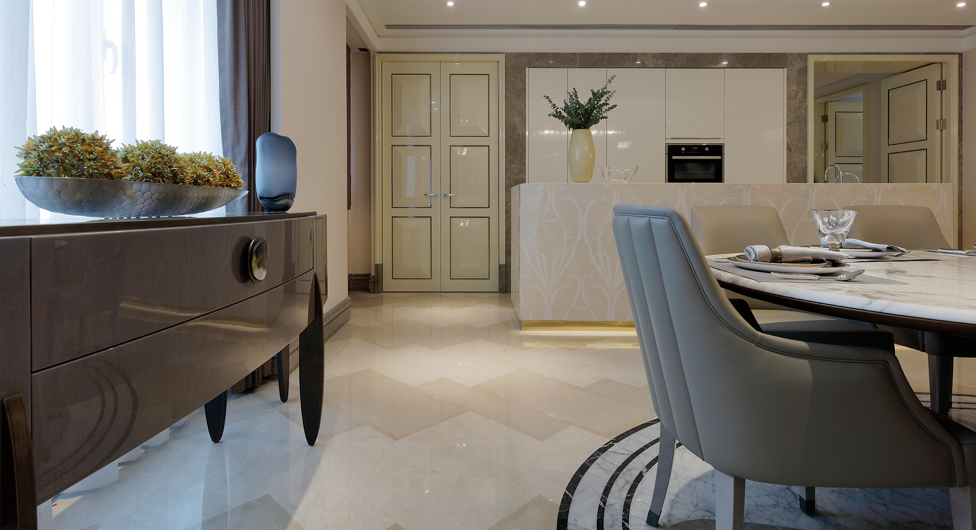 项目名称: 建发 · 中央湾区 / 央座 地区:中国 · 厦门 设计&陈列:卡萨贝拉-设计部 品牌:Giorgetti / Malerba 项目概述: 中央湾区平层大宅,傲立厦门五缘湾,大师邱德光先生御笔打造 以77席,350㎡、570㎡阔府私宅,拥戴人居生活 卡萨贝拉联袂意大利设计大师极力呈现 在厦门湾地标大宅,金质演绎现代豪居品质